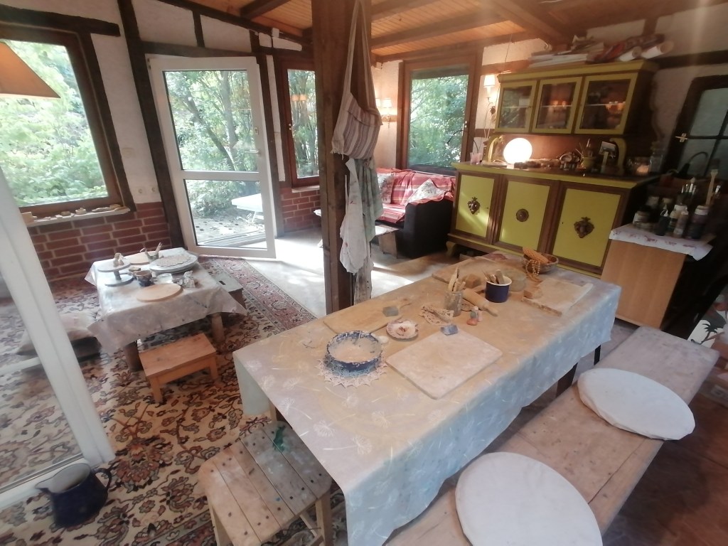 Die beiden Ateliers des KreativPlatzes befinden sich an zwei Standorten in Lich: Im Sommer im Fantasiegarten, im Winter im fantastischen Teppichladen