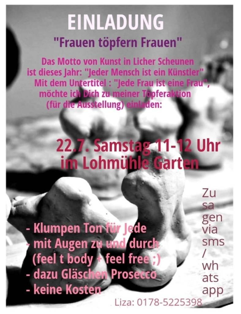 Im Rahmen der Licher Kulturtage lade ich Jeden mit Interesse an diesem Kunstprojekt zur Teilnahme, bzw. zur Ausstellung ein.